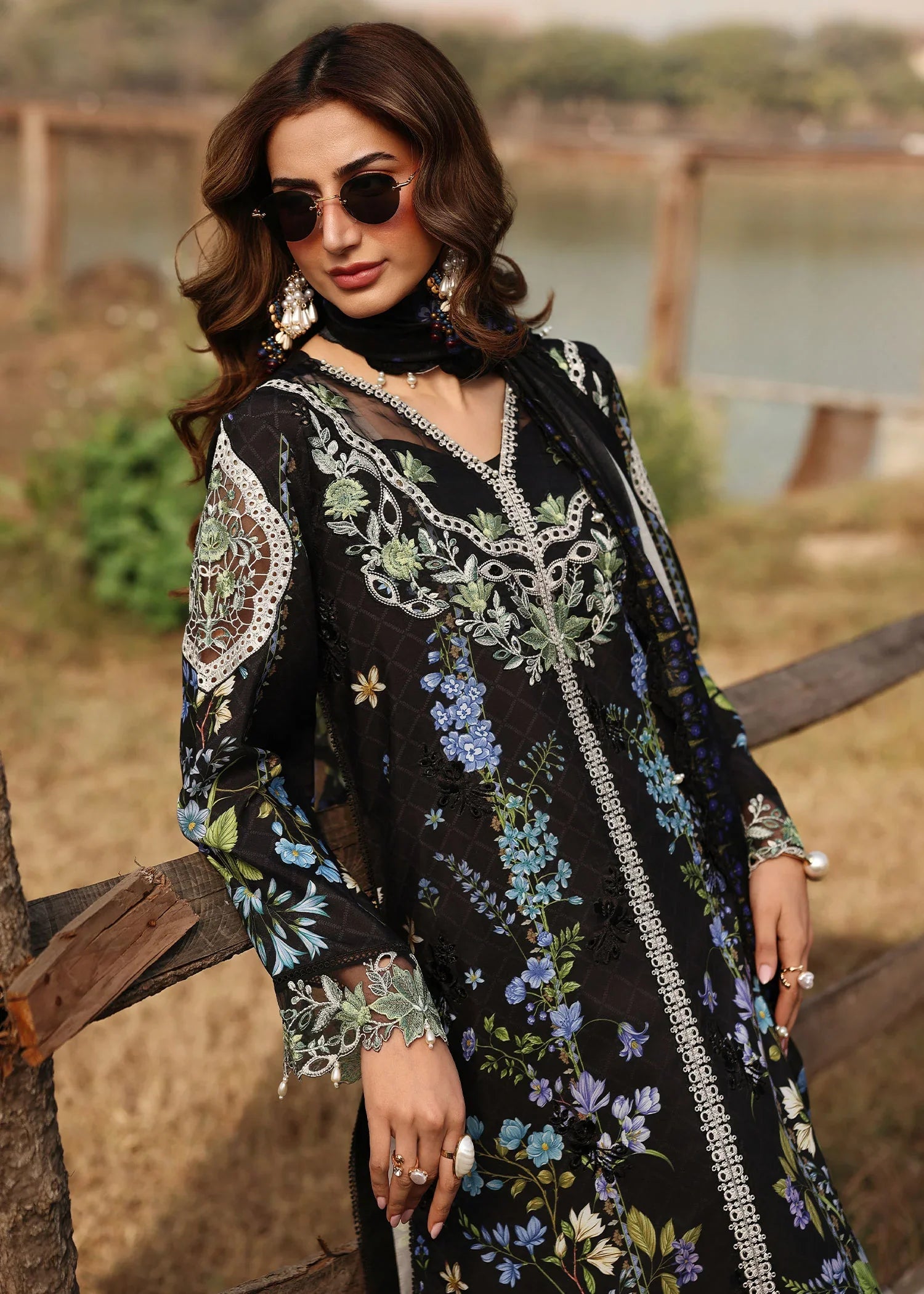 - Embroidered sleeve border (organza)