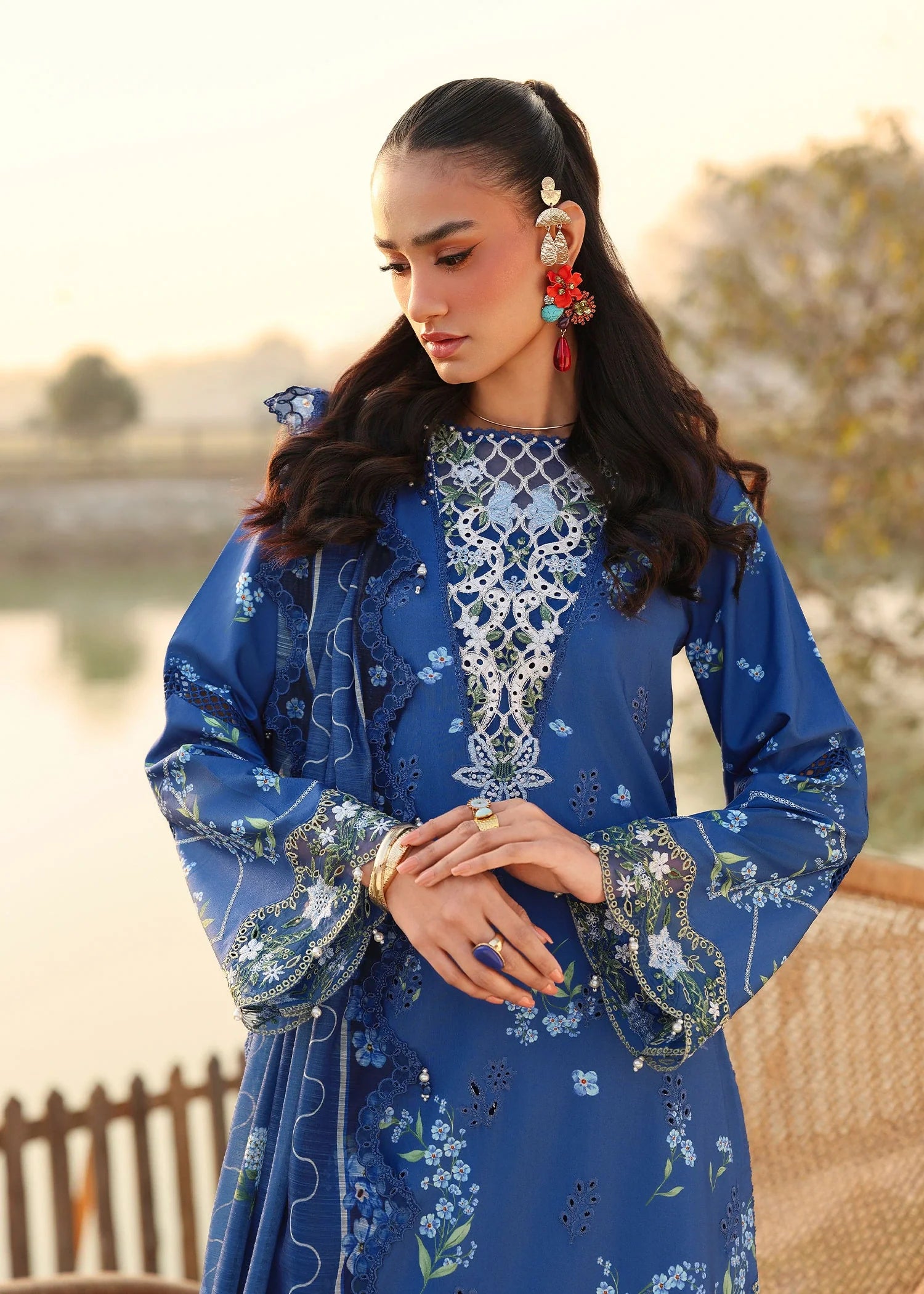 - Chikankari on digital printed sleeves (Lawn)
