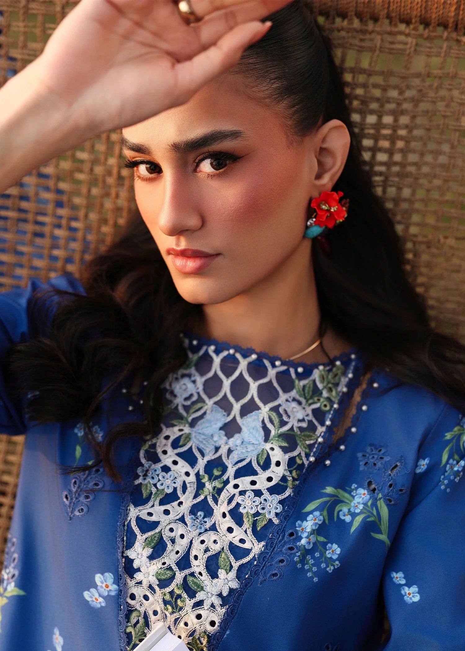 - Embroidered sleeve border (organza)